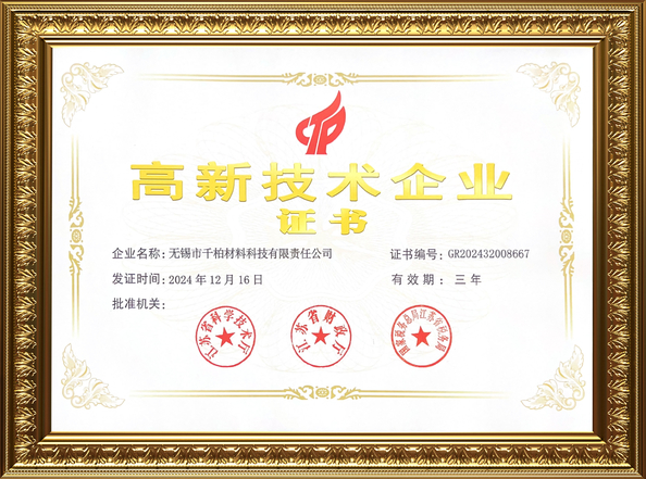 المعيار:Jiangsu Province High Innovation Technology Enterprise Certification الرقم:GR202432008667 تاريخ الإصدار:2024-12-16 تاريخ انتهاء:2027-12-15