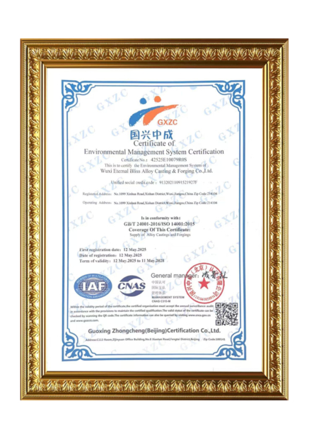 المعيار:ISO14001 الرقم:42525E10079R0S تاريخ الإصدار:2025-05-12 تاريخ انتهاء:2028-05-11